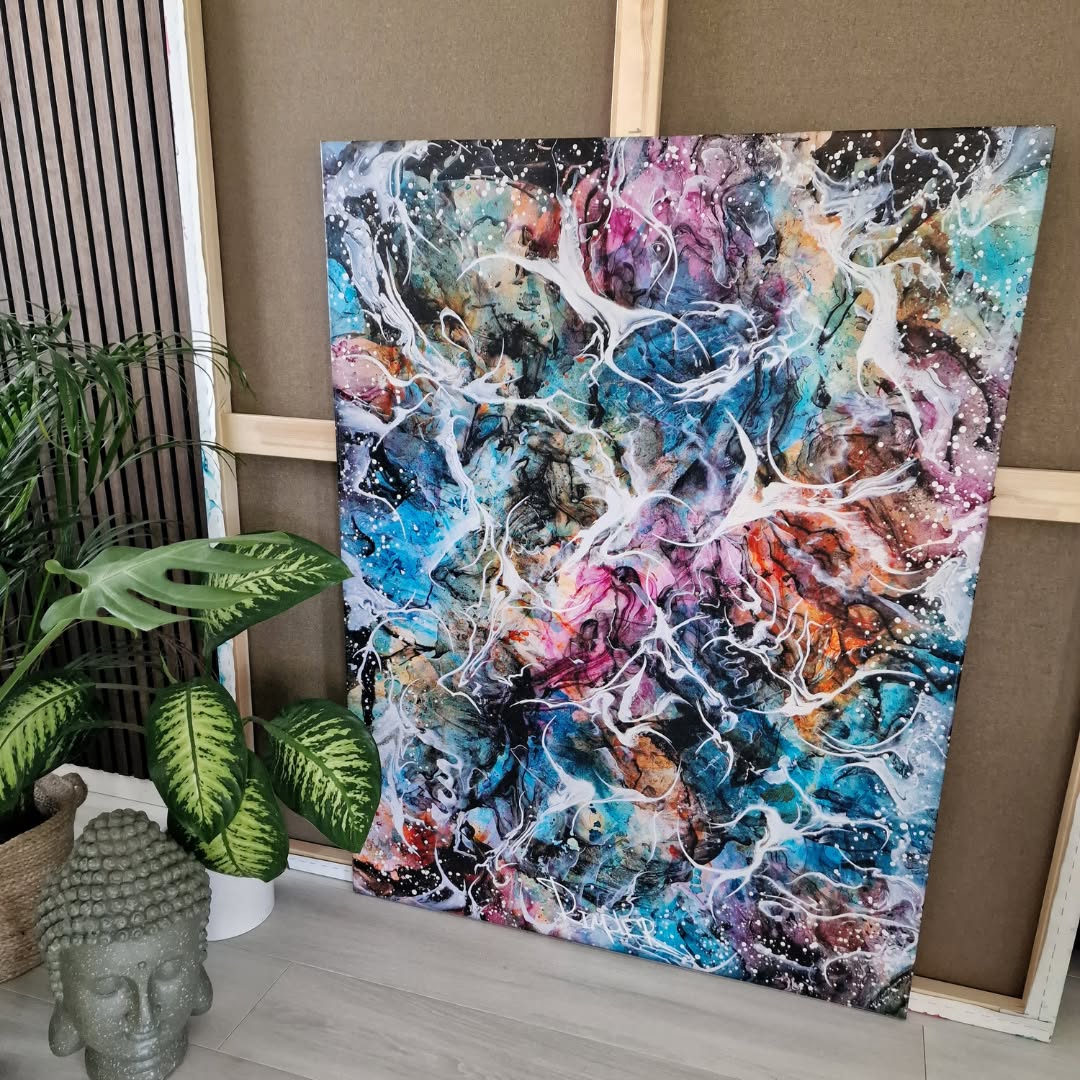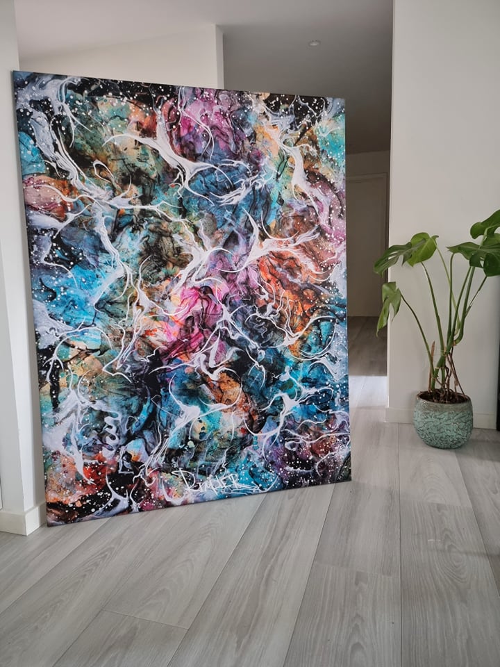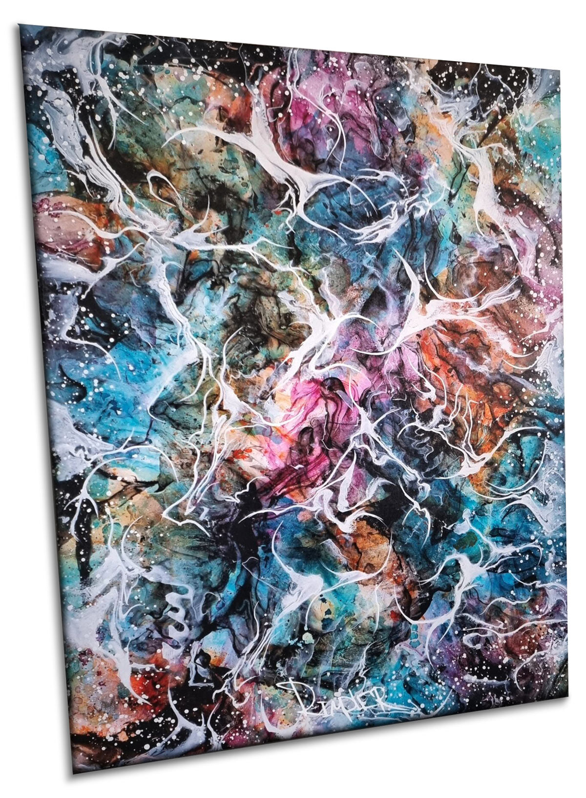 Chaos in Mandalay – limited edition er et lærredsprint, der stammer fra originalmaleriet af samme navn. Udgangspunktet for Rimpler var et ønske om at skabe en farverig verden fuld af nuancer – præcis som virkelighedens verden – og forsøge at gøre den harmonisk og rolig med bløde strøg og flydende former.