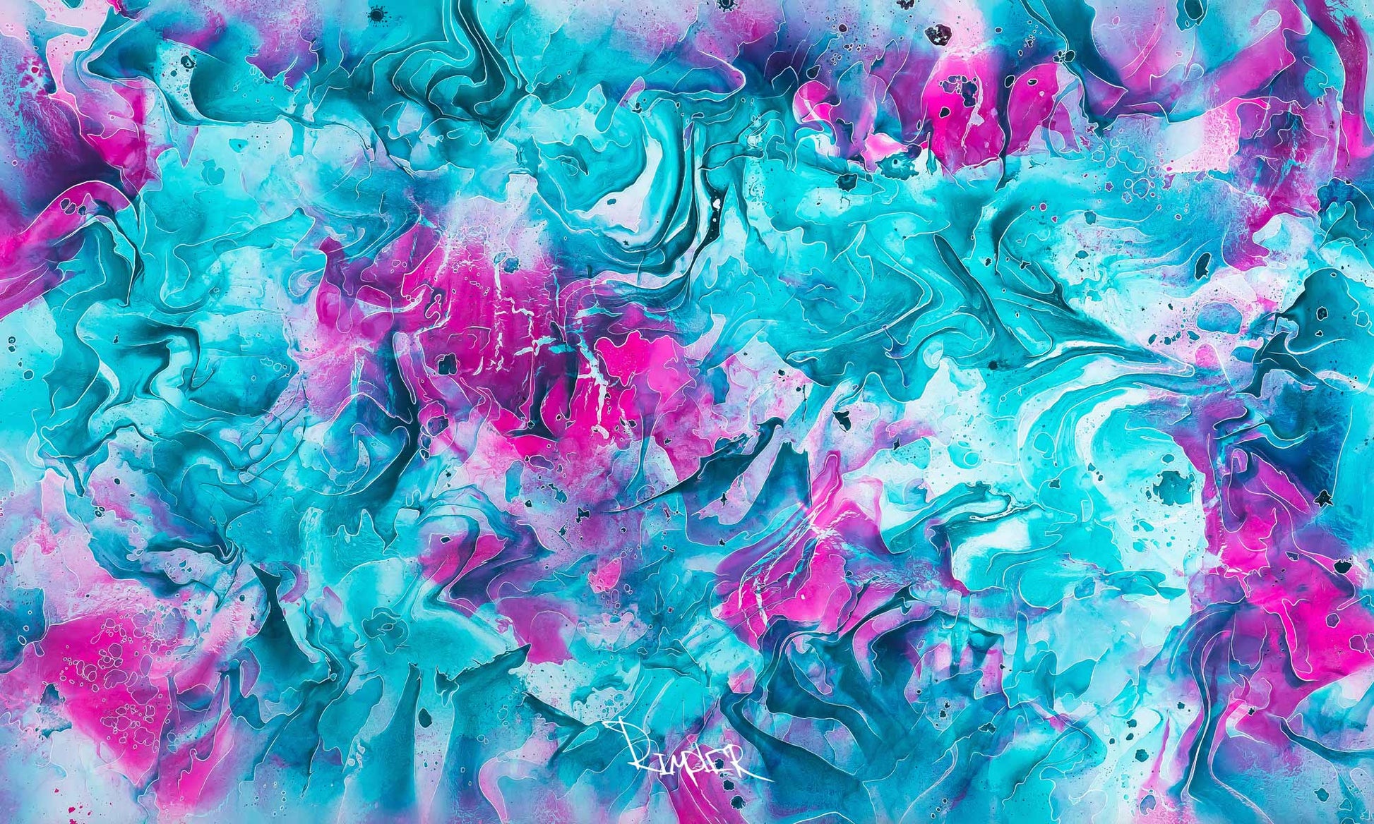 Farverne bevæger sig frit, men i harmoni — som bølger, der finder hvile.