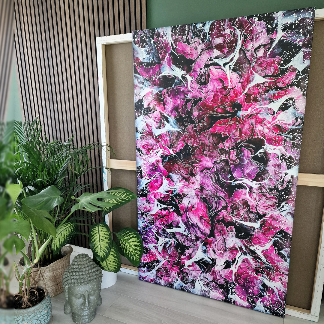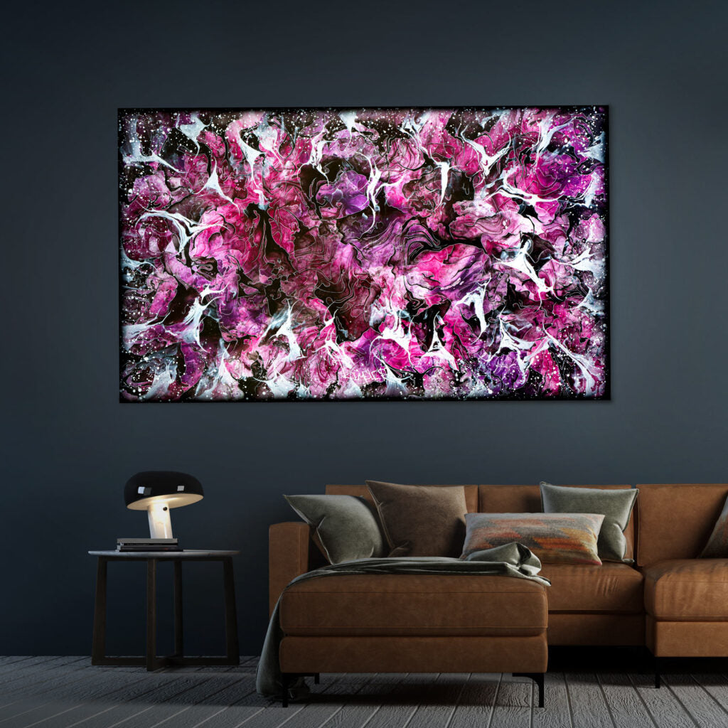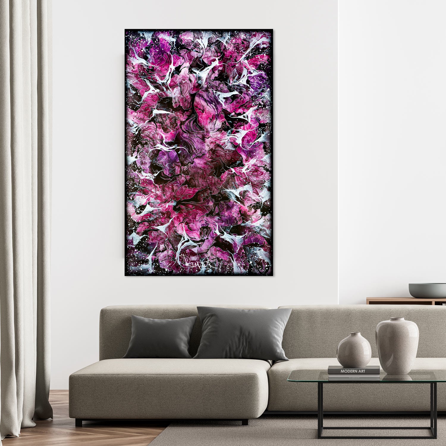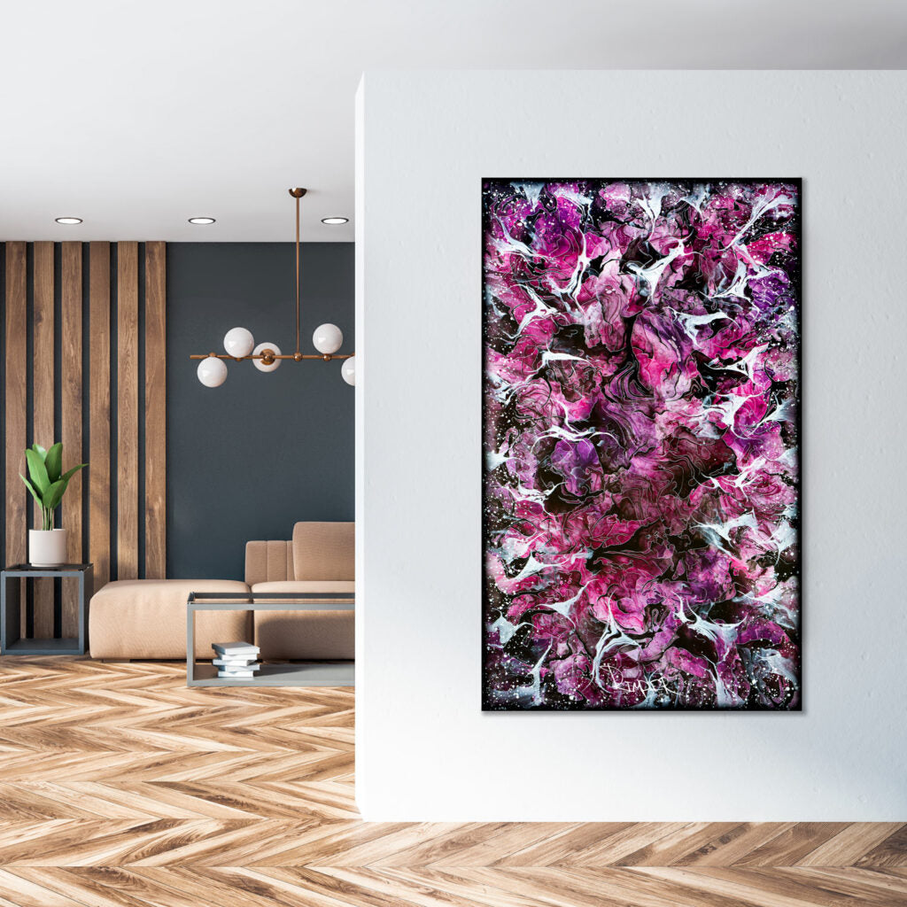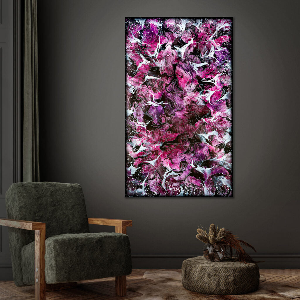 Seneca – limited edition er til dig, der søger et værk med kraft, dybde og et strejf af mystik. Her folder Rimpler de intense lilla, rosa og mørke nuancer sig ud som en eksplosiv, næsten kosmisk bevægelse – et visuelt univers, der både er vildt, poetisk og hypnotiserende på samme tid. Seneca er kunst, der mærkes. Et værk, der trækker dig ind og bliver ved med at afsløre nye detaljer, hver gang du ser på det.